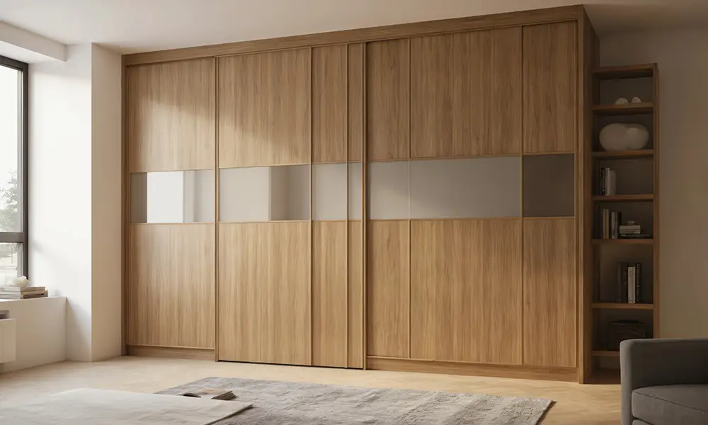 Em quartos menores, o planejamento precisa ser ainda mais preciso. Portas de correr evitam interferência no uso do espaço, espelhos ajudam a ampliar visualmente o ambiente e a divisão interna do armário deve refletir o tipo de roupa e os hábitos de quem utiliza o dormitório. Aproveitar o espaço vertical deixa de ser apenas uma escolha estética e se torna uma solução funcional indispensável.